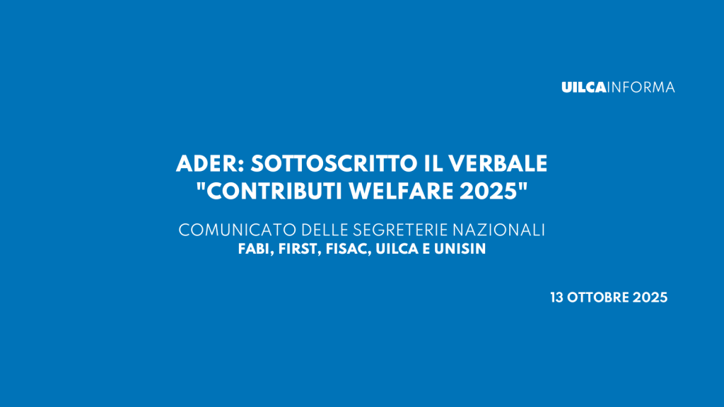 Il contributo welfare, previsto dal Contratto Integrativo Aziendale, sarà erogato con la prossima retribuzione del mese di ottobre.