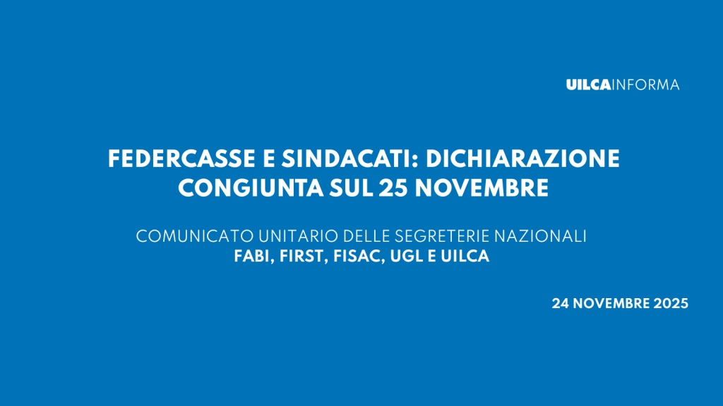 Federcasse e Sindacati: dichiarazione congiunta sul 25 novembre