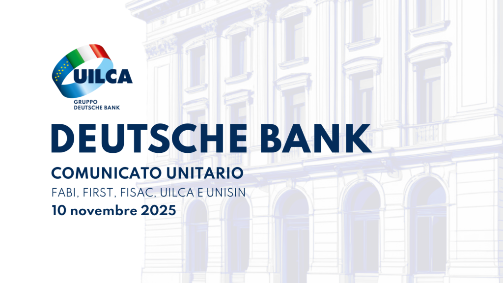 Dopo una complessa trattativa, in data odierna le Organizzazioni Sindacali Fabi – First – Fisac – Uilca – Unisin e l’Azienda hanno raggiunto un accordo sui criteri per la determinazione del premio aziendale 2025 per DB S.p.A..