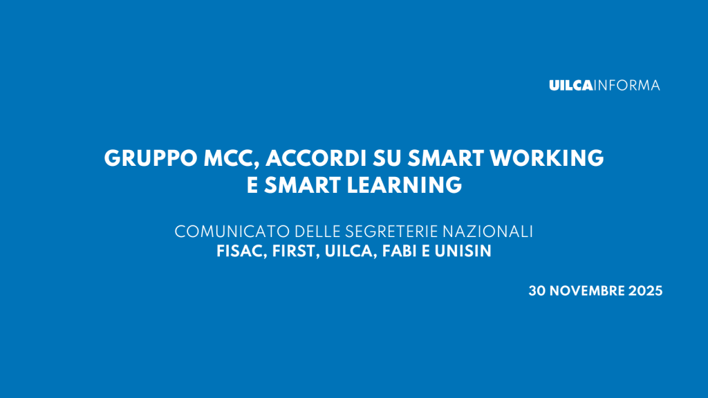 Si informano i Lavoratori che, nelle giornate del 26 e 27 novembre, la delegazione sindacale del Gruppo Mcc ha incontrato la controparte aziendale al fine di definire i necessari accordi di rinnovo relativi allo smart working (SW) ed allo smart learning (SL), in scadenza il prossimo 31 dicembre.