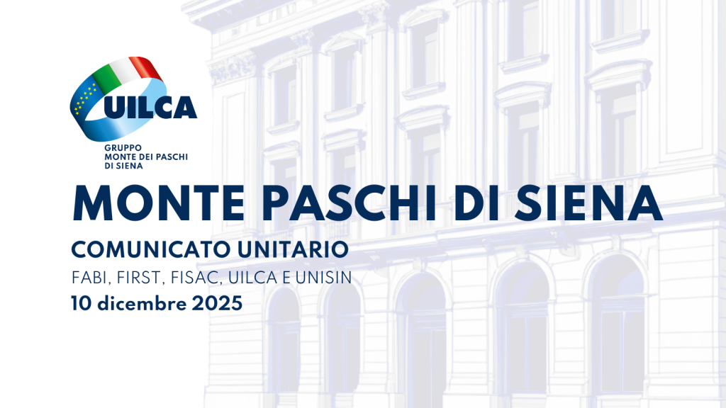Con riferimento, infine, agli sviluppi legati all’OPS/OPAS Monte Paschi-Mediobanca, il Sindacato continuerà a vigilare affinché tale vicenda non interferisca né condizioni in alcun modo il corretto avanzamento del confronto in corso e la piena tutela degli interessi del personale. Le relazioni industriali devono proseguire con continuità e responsabilità, senza che fattori esterni ne compromettano l’efficacia.