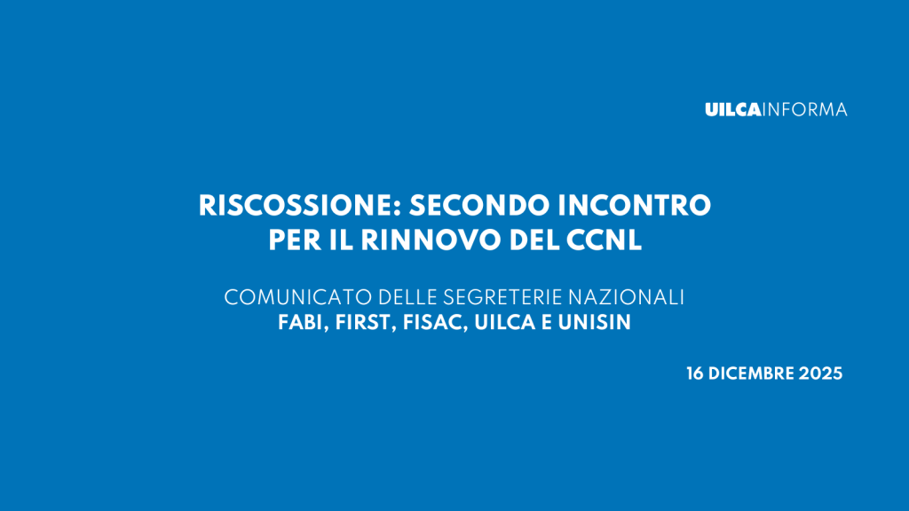 Nella giornata odierna si è svolto il secondo incontro di trattativa per il rinnovo del Contratto Collettivo Nazionale di Lavoro della Riscossione.