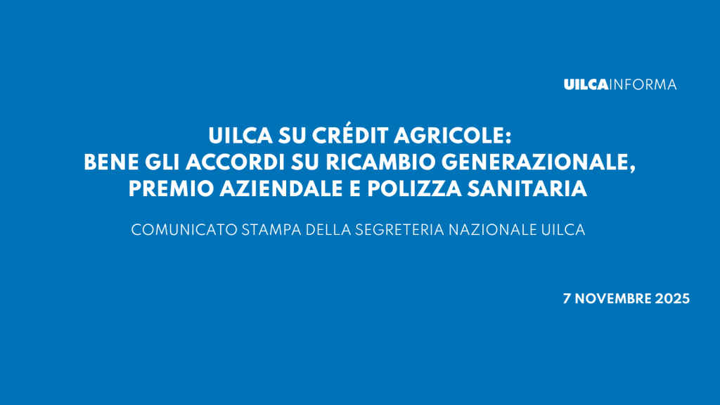 “Siamo fieri di aver raggiunto questi traguardi, che testimoniano l’ottimo andamento del Gruppo e l’importanza strategica di investire sul personale, nonché il frutto di una solida contrattazione di secondo livello, elementi che Uilca ha sempre posto al centro delle sue rivendicazioni”, aggiunge Claudio Piccirilli, segretario responsabile Uilca Gruppo Crédit Agricole Italia. “Il Premio Aziendale e la proroga della polizza sanitaria sono il giusto riconoscimento del valore delle persone che garantiscono qualità, professionalità e vicinanza alla clientela, rafforzando il legame tra risultati aziendali e valorizzazione del lavoro. In merito al Fondo di Solidarietà, l’intesa coniuga l’uscita di lavoratrici e lavoratori prossimi alla maturazione del requisito pensionistico con il rafforzamento della presenza di lavoro giovane, stabile e qualificato, ottenendo un vero ricambio generazionale nel Gruppo. Un dialogo sindacale costruttivo può produrre risultati concreti, capaci di tenere insieme equità sociale e innovazione”.