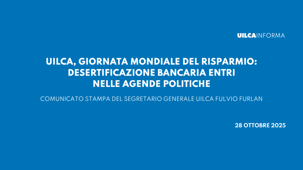 “Il mondo bancario negli ultimi anni sta subendo numerose trasformazioni, anche dovute agli impatti dei processi di digitalizzazione. La tecnologia e l’uso delle app, però, non possono essere l’unica risposta alle esigenze di persone, imprese e comunità rispetto a un servizio essenziale come quello che offrono le banche in termini di erogazione del credito, tutela del risparmio e sviluppo dei territori. Per questo crediamo opportuno che il problema della desertificazione bancaria entri nelle agende politiche: le banche hanno un ruolo centrale sotto il profilo economico e sociale per favorire la crescita del Paese”, così il segretario generale Uilca Fulvio Furlan commenta la Giornata mondiale del risparmio 2025.